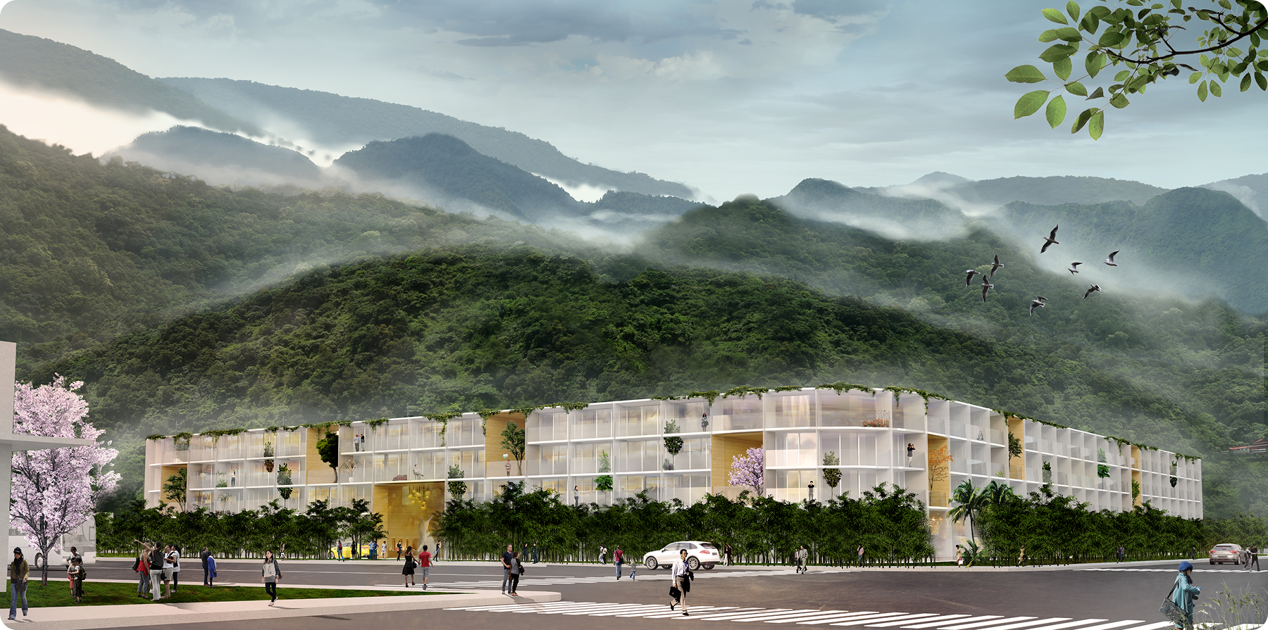 Suao is the gateway to the natural East side of Taiwan. It is the place where the green of nature meets the blue Pacific, where the immovable central mountain range中央山脈meets the unstable and changing sea, where the unfathomable jungle meets the open ocean. This project explores this duality in the people who pass by Suao, a place where we want to look to the infinity and be in our own space, observe the force of the sea and feel protected, enjoy the agitation of the ocean and experience the tranquility of nature.