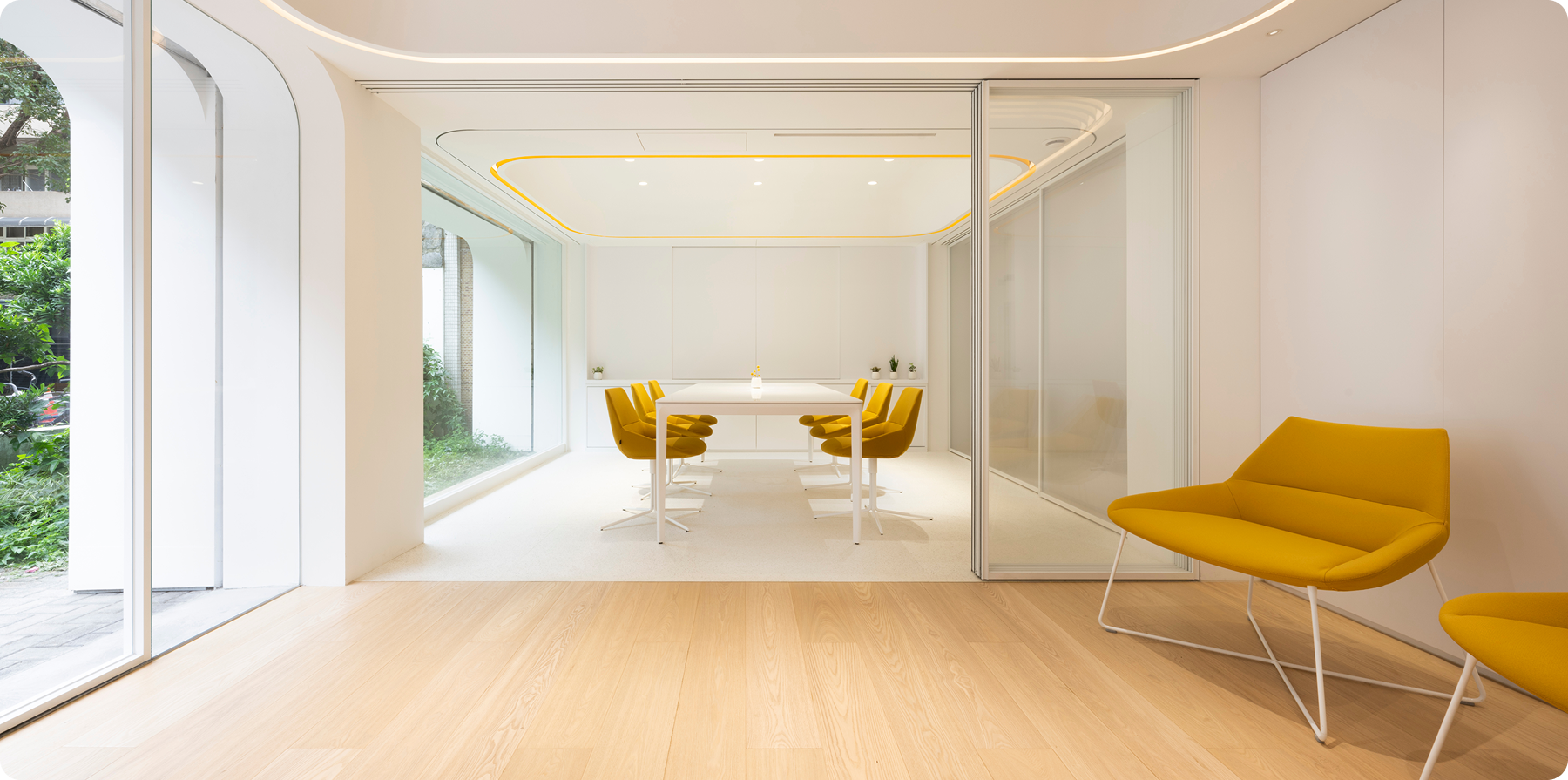 Office space behind the meeting room