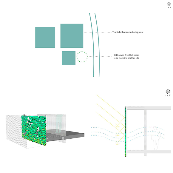 Sometimes a simple concept can be the most efficient design strategy. A gesture that all tennis players have seen defines the purpose of the building and at the same time allows us to create a facade that transforms the factory in to an extremely beautiful, iconic building.