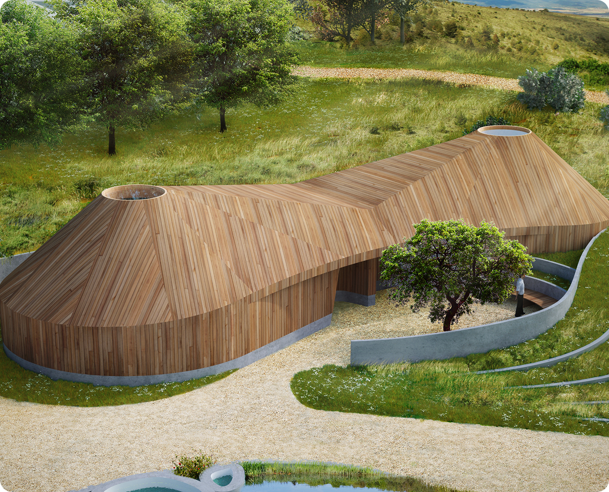 The role of the architecture is to encourage the construction of an alchemical space: a place that welcomes the human being on the way to raise its vibration facilitating contact with nature and with its inner self.