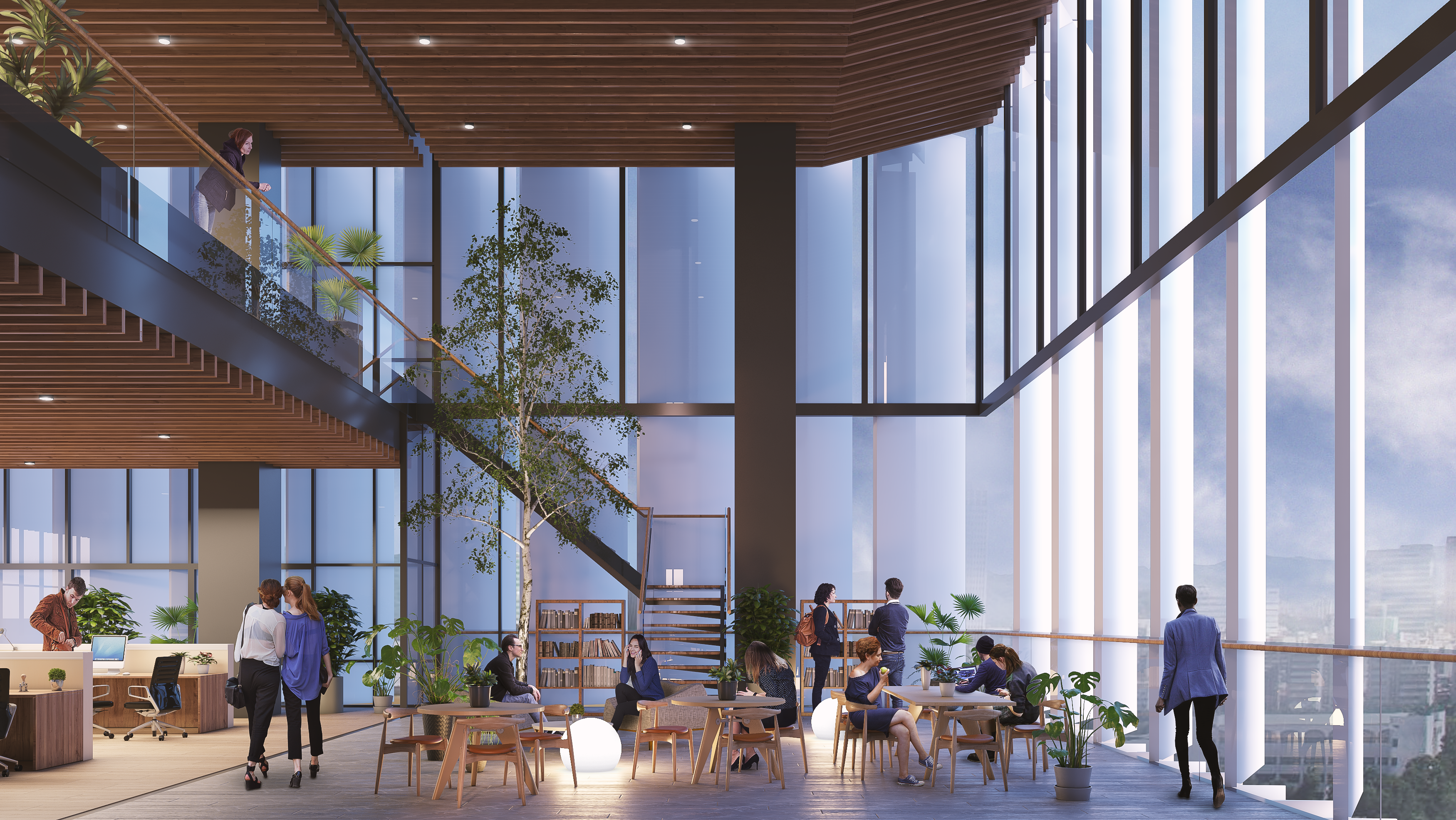 With cold glass facades and heavy concrete structures dominating Taipei’s skyline, the solution crafted for the Yuda school stands in contrast to its peers with a light façade and steel frame structure. The result is a visual decompression of the urban environment. The interior experience too follows this decompression principal, offering several double height co-working spaces that look to the adjacent park on the lower levels, and too the nationally important Taipei 101 on the upper levels. Interior space is further enhanced through the strategic placement of the core at the structure’s north-western most corner, enabling large, uninterrupted spaces that can be adapted to a variety of program sizes.