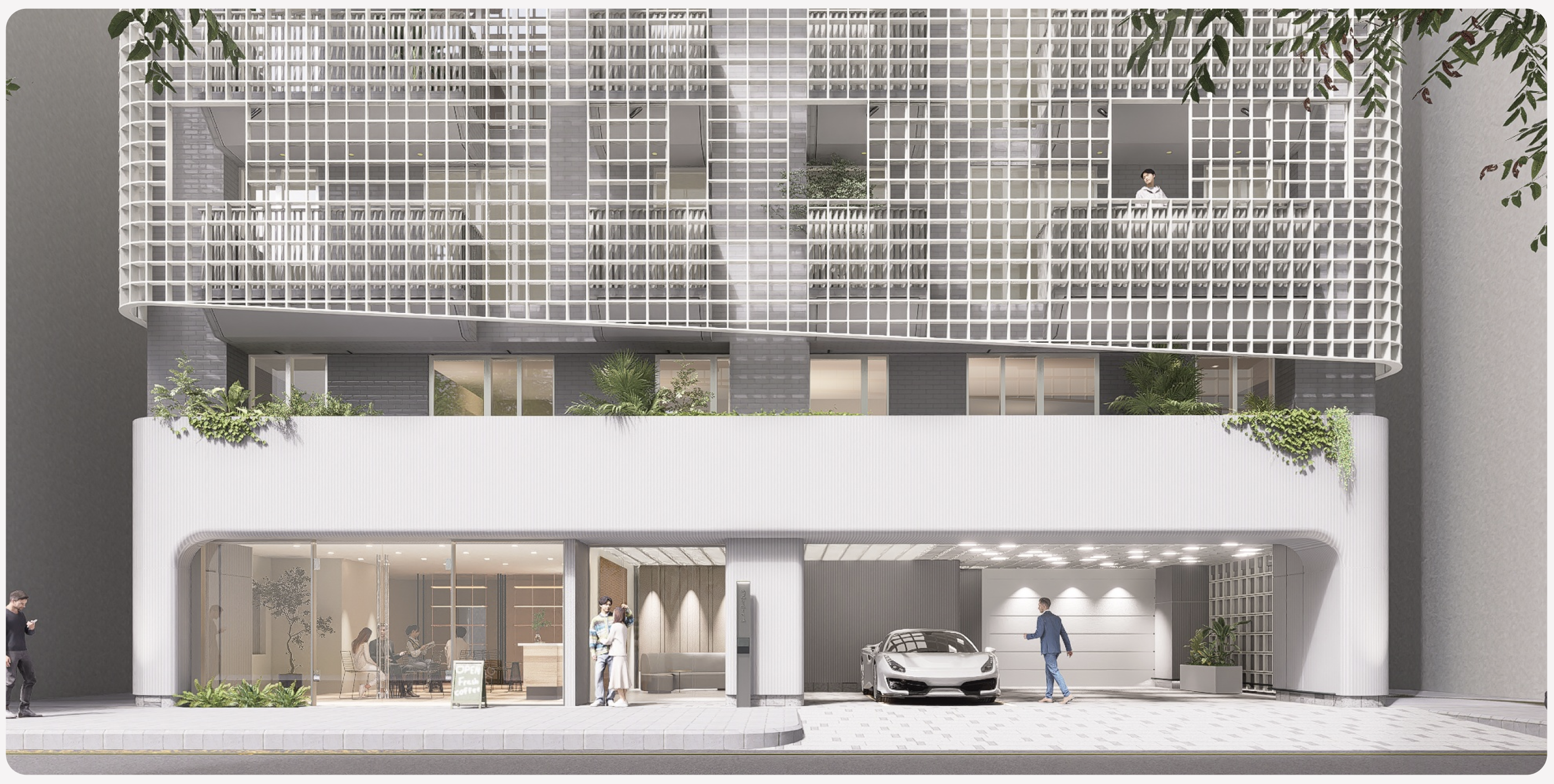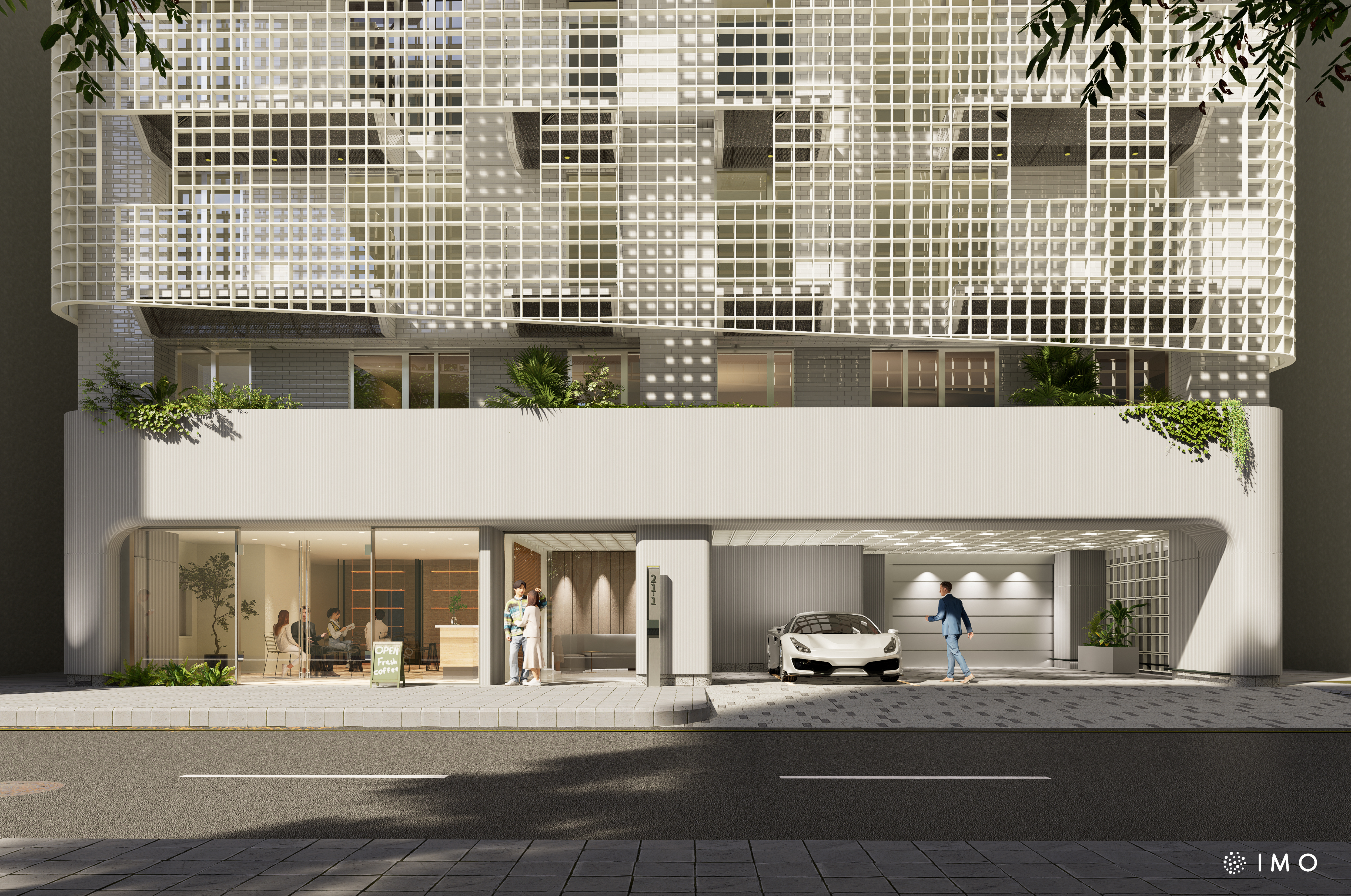 Located prominently in Zhongshan, one of the busiest commercial districts in Taipei, the tower creates relief from the dense, populated urban environment offering a tranquil interior retreat. Here, an operable screen is used to enable desirable views to an adjacent green plaza while still providing much needed privacy from the adjacent Regent Hotel. The screen design additionally allows for filtered light to penetrate the skin to illuminate interior residential spaces.