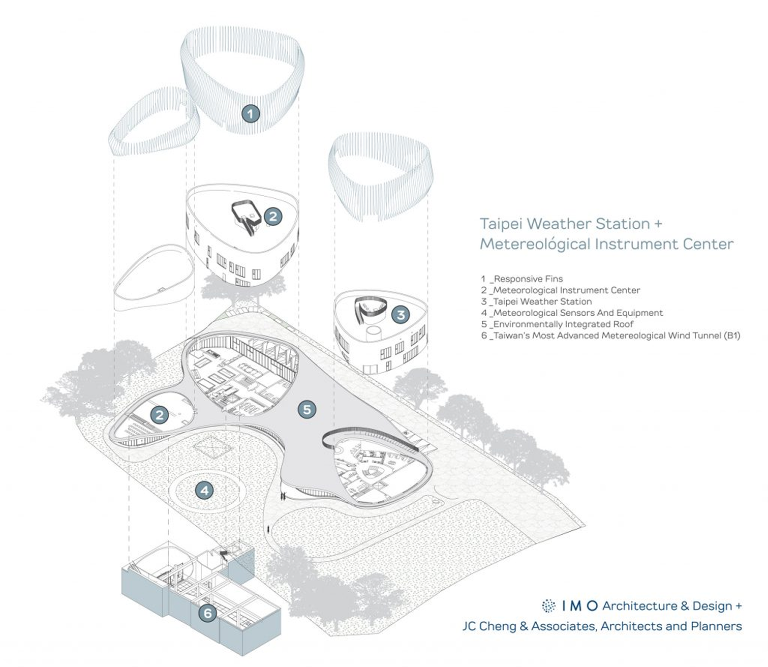 由於氣候變遷及颱風等天氣現象愈來愈極端化,對氣候的了解與預測也就日趨重要。台灣的氣候及氣象學者如同防護盾般,藉由對天氣之預測,捍衛著我們遠離這些災害,每年拯救無數人的生命。藉著他們的努力,並教導大眾如何共同來減緩氣候變遷,這與運用各種工具預測氣候來說,是同等的重要。IMO建築暨設計事務所與程俊強建築師事務所的建築師們相信,這項即將在新店動工的工程,台灣最新且最先進的臺北氣象站及氣象儀器檢校中心,不僅只是容納儀器設備的建築,它應當扮演啟發並賦予人們改變的力量。