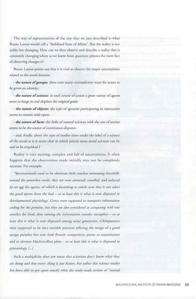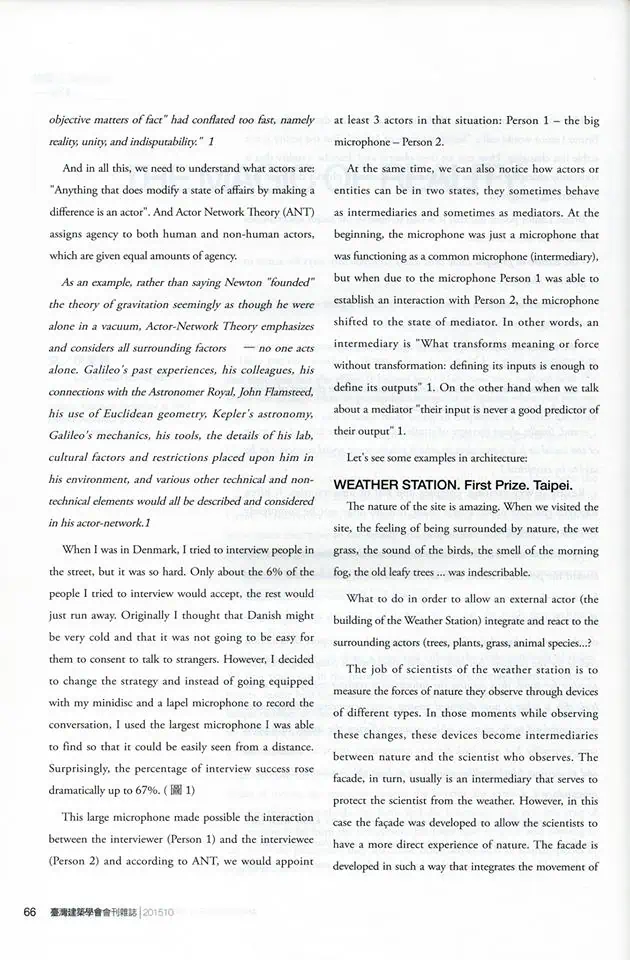 IMO的合夥建築師伊萊恩在「台灣建築學會」會刊雜誌第80期發表了一篇文章「真實的魅力The Magic of Reality」.